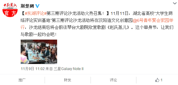 陶建武(武汉大学):歌剧宣传就是要让没接触过歌剧的人接触、了解歌剧,也只有了解了歌剧,才知道爱不爱看歌剧。宣传方式多种多样,通过开展“歌剧进校园、进社区”、“歌剧讲座小组”、全国青歌赛以及“歌剧爱好者沙龙”等主题活动,才能够提高大众对歌剧艺术的认知度和认同感,无疑是十分有益的举措。