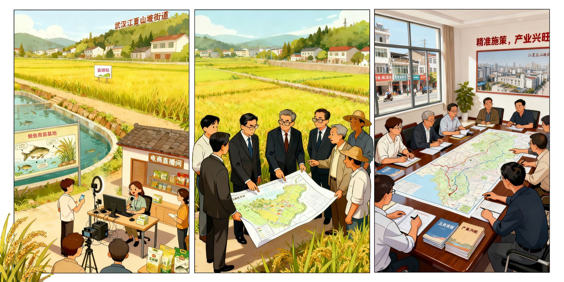 把“规划图”变成“施工图”,以组织引领定方向。乡村振兴的顶层设计是宏伟的“规划图”,但若没有基层组织的精准“转译”,就容易陷入上下一般粗的困境。组织引领的首要任务,就是当好“总设计师”与“项目经理”,将宏观政策细化为契合地方实际的“施工图”。这要求基层党组织必须“吃透上情、摸清下情”,既深刻领会中央精神,又精准把握本村的资源禀赋、产业基础与文化特质。譬如,武汉江夏山坡街道瞄准“五类资源”分类施策,正是组织力量在精准研判后,将“产业兴旺”的宏观要求,具象化为“鳜鱼育苗、富硒稻种植、闲置农房激活”等一系列可操作的项目。组织引领,就是要让顶层设计的“大写意”,落地为基层实践的“工笔画”,确保振兴的每一步都踩在实点上、走在正路上。