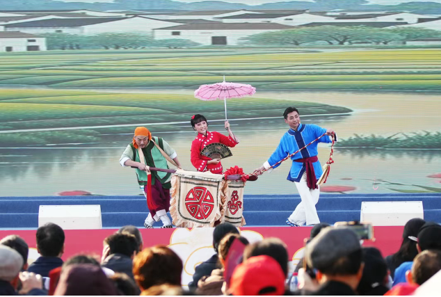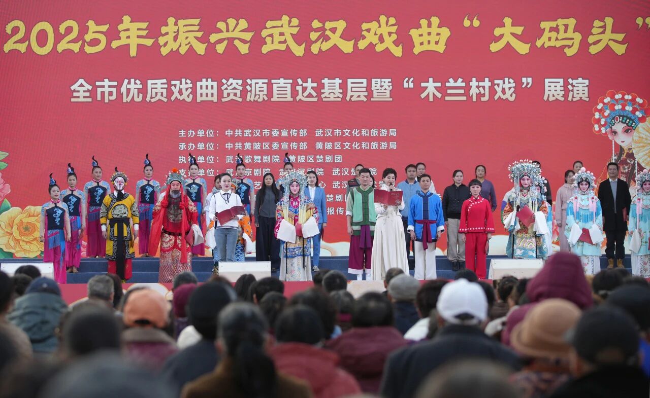 近日,2025年振兴武汉戏曲“大码头”全市优质戏曲资源直达基层暨“木兰村戏”展演在武汉市黄陂区黎元洪广场举行。展演现场,京歌《繁花似锦戏码头》、汉剧《贵妃醉酒》、楚剧《推车赶会》、戏曲情景剧《木兰村戏韵新声》等经典戏码,为戏迷和市民带来一场精彩的戏曲盛宴,获得现场观众一致好评。