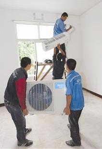 图为:武汉大学工学部学生五舍安装空调场景 本报资料图片