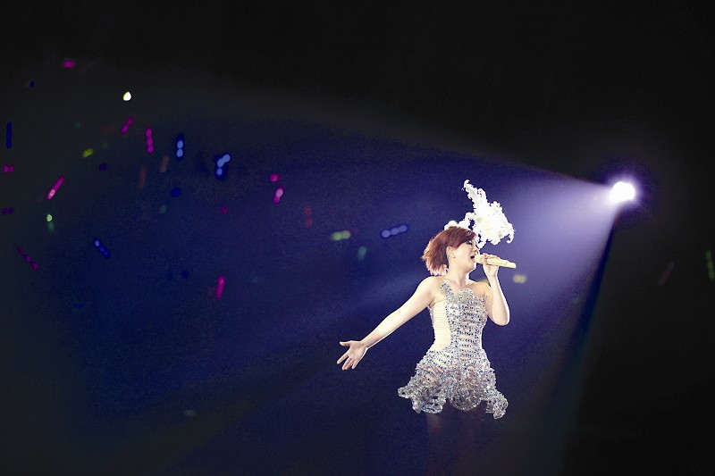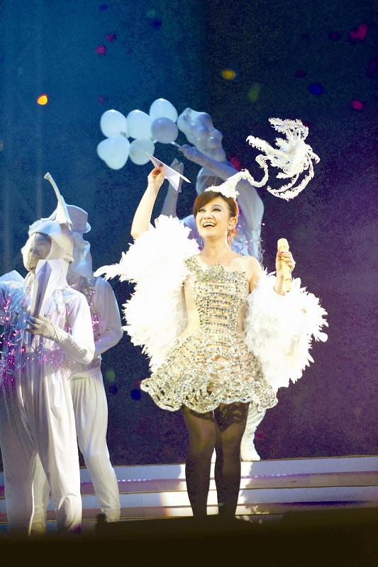 一开场,身披羽毛裙、脚踩恨天高的梁静茹在一首《暖暖》中,孩子气地向台下抛去纸飞机,这来自偶像的礼物自然让全体歌迷疯狂不已,而显然有从外地赶来,看过静茹其他场演唱会的歌迷竟然打起“求飞机”的灯牌,让梁静茹和现场歌迷全体爆笑。之后,坐在海豚灯上的梁静茹更不忘跟歌迷开玩笑,“想要坐海豚,我让给你们,你们买坐票好不好?”