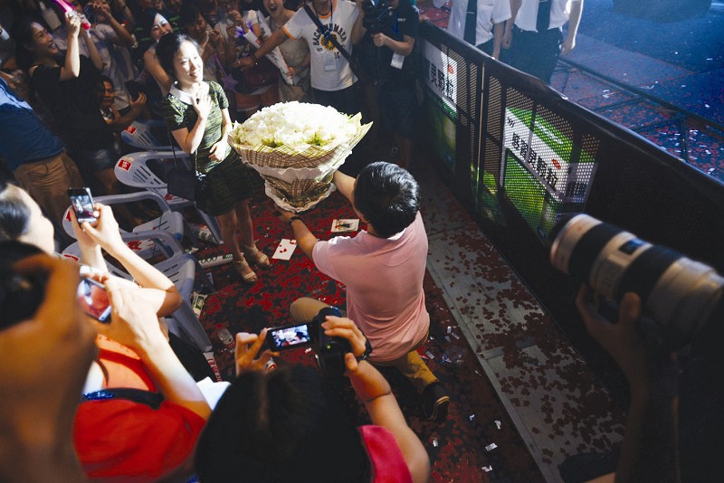 粉丝打灯牌“求飞机”