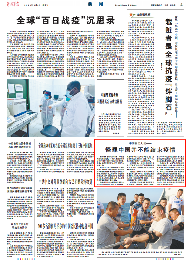 新华社华盛顿5月6日电 中国驻美国大使崔天凯6日表示,指责游戏该结束了,怪罪中国并不能结束这场疫情,中美之间亟待修复互信,把力用到合作抗疫上来。