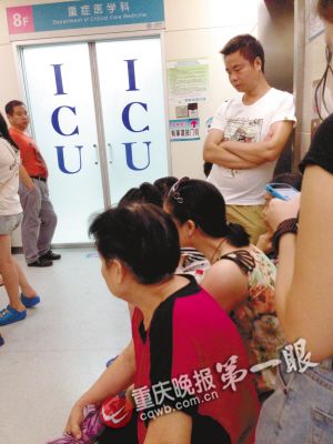 昨天中午,重庆医科大学附属儿童医院内科大楼8楼ICU病房外,蔡斌一家人正焦急等待着诊断结果。