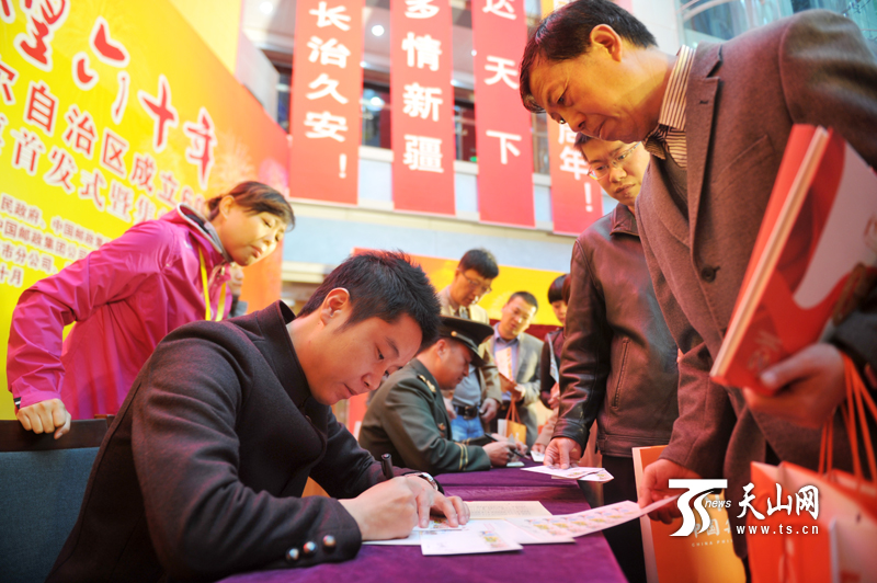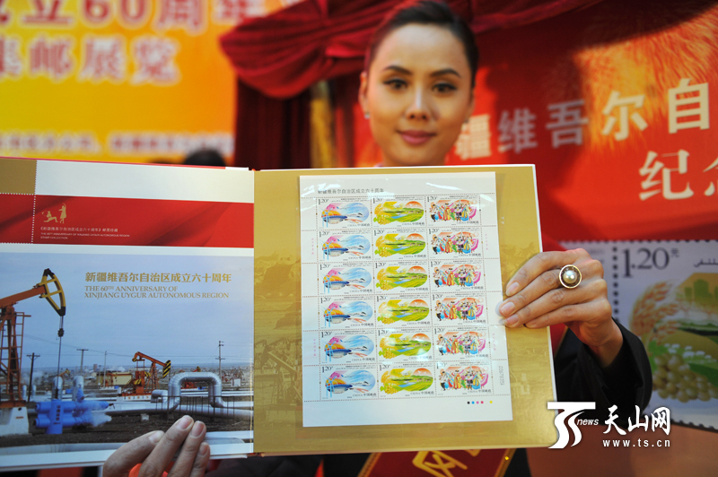 天山网讯(记者郭峰摄影报道)10月1日上午,《新疆维吾尔自治区成立六十周年》纪念邮票首发式暨集邮展览开幕式在乌鲁木齐举行。