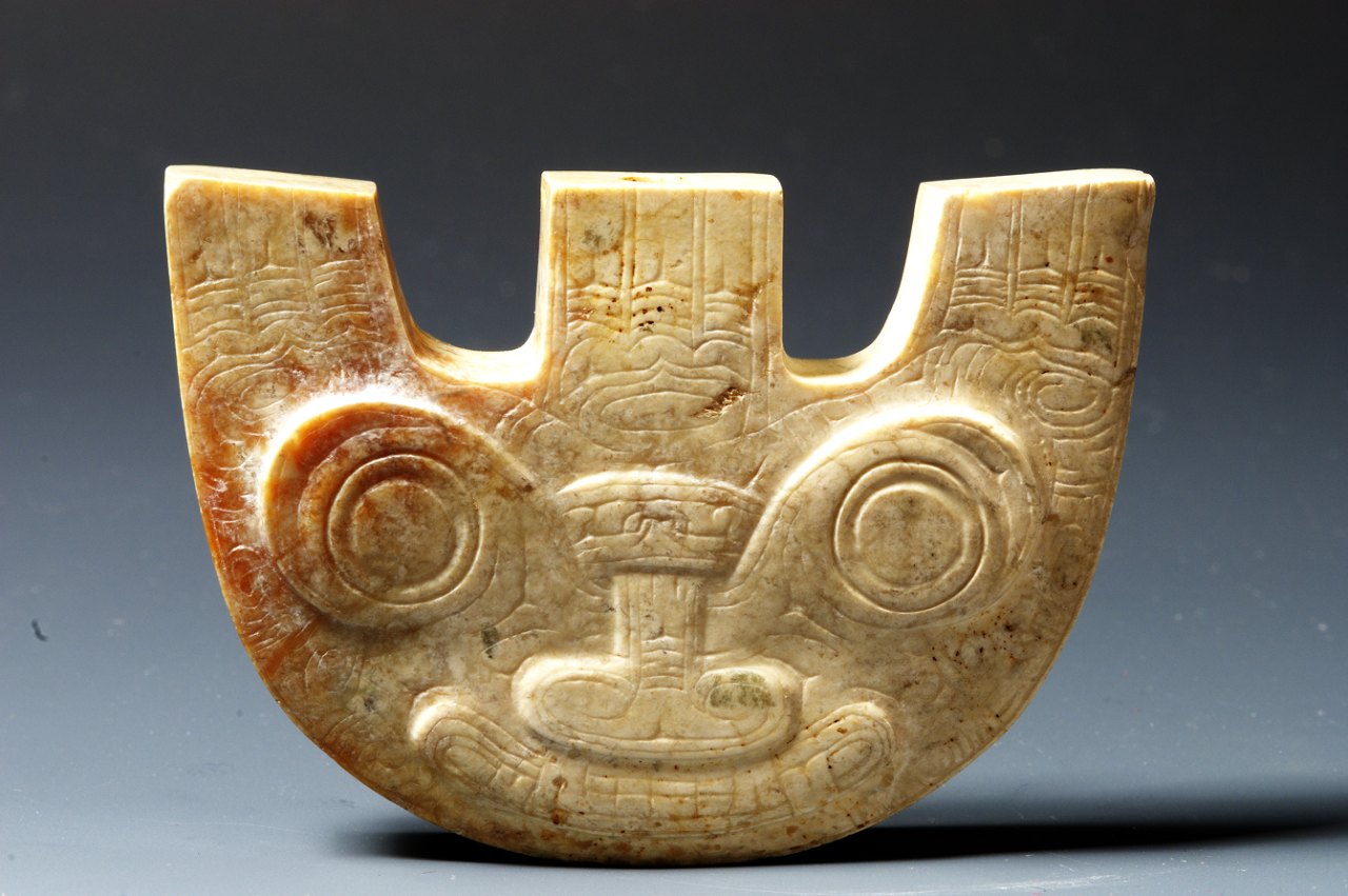 漫步展厅,听珍贵文物把长江文明的源远流长与博大精深娓娓道来。来自浙江省博物馆的兽面纹玉三叉形器,远看是一个平平无奇的“山”字,近看却会被其精细的雕刻和神秘的兽面纹饰所震撼,让游客感叹于长江下游地区先民在新时期时期就已掌握的高超的玉器工艺。